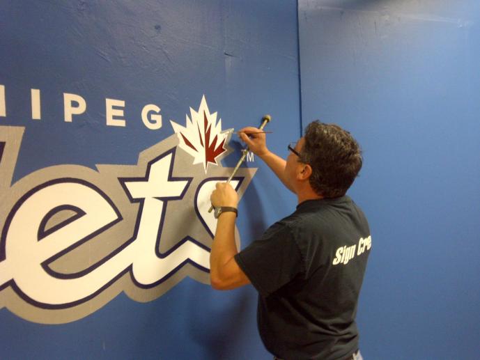 Richard Wagner of the Winnipeg company Signmeister spent 10 painstaking hours on the truck wrap. (Janice Grant/CBC)